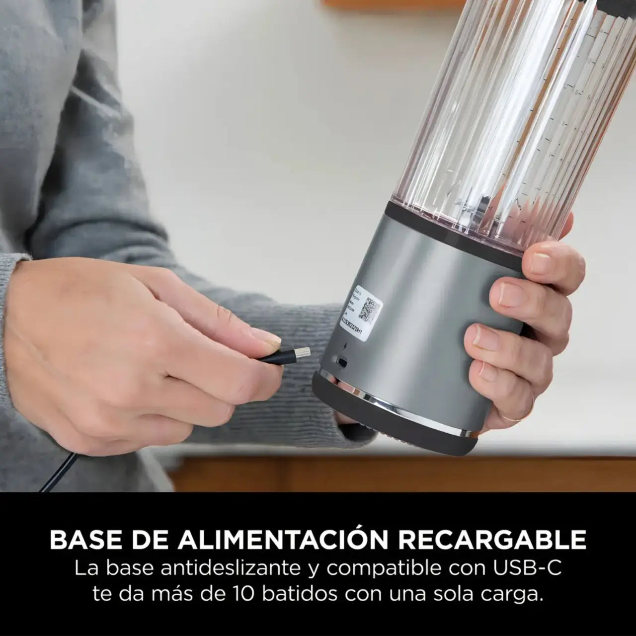 BATERÍA DE LARGA DURACIÓN: Base USB-C recargable que alcanza más de 10 batidos con una sola carga. Cable de carga USB-C